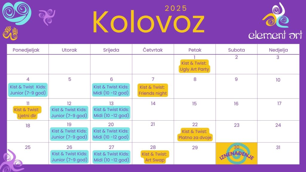 I ovog mjeseca Element Art donosi veselu i razigranu kombinaciju za sve uzraste – Kist & Twist radionice za odrasle i Kist & Twist Kids za najmlađe kreativce!